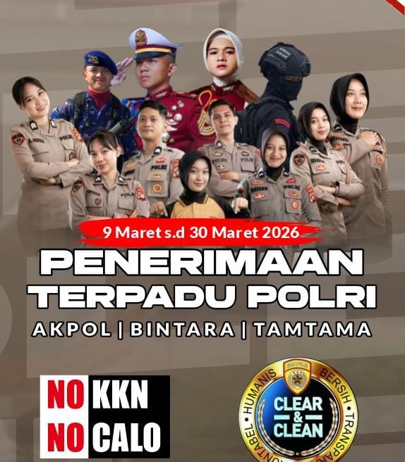 Terkini | • Maret 23, 2026 • Penerimaan Terpadu Polri 2026 Resmi Dibuka, Polda Sulbar Ajak Generasi Muda Daftar Tanpa KKN MAMUJU – Kepolisian Negara Republik Indonesia kembali membuka Penerimaan Terpadu Polri Tahun Anggaran 2026 untuk...