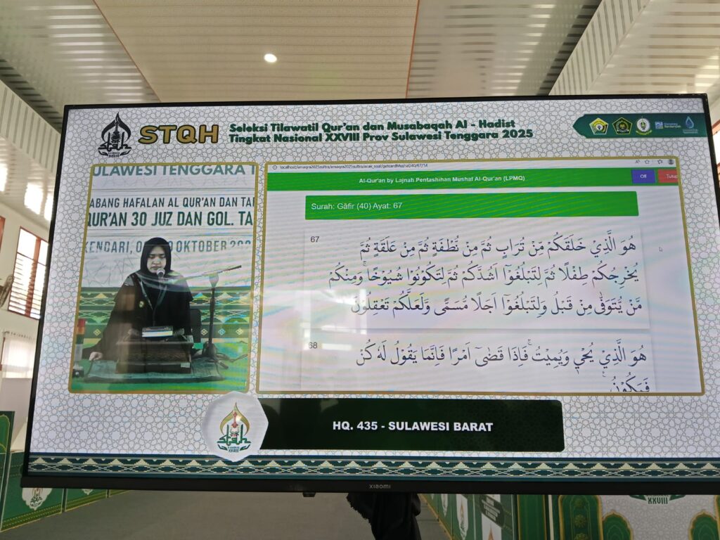 Kendari — Memasuki hari keempat pelaksanaan Seleksi Tilawatil Qur’an dan Hadist (STQH) Tingkat Nasional ke-28 di Kendari, Sulawesi Tenggara, Provinsi Sulawesi Barat (Sulbar) kembali menurunkan empat delegasi terbaiknya, Rabu, 15 Oktober 2025. Para peserta akan tampil di empat venue berbeda dengan cabang lomba yang bervariasi.