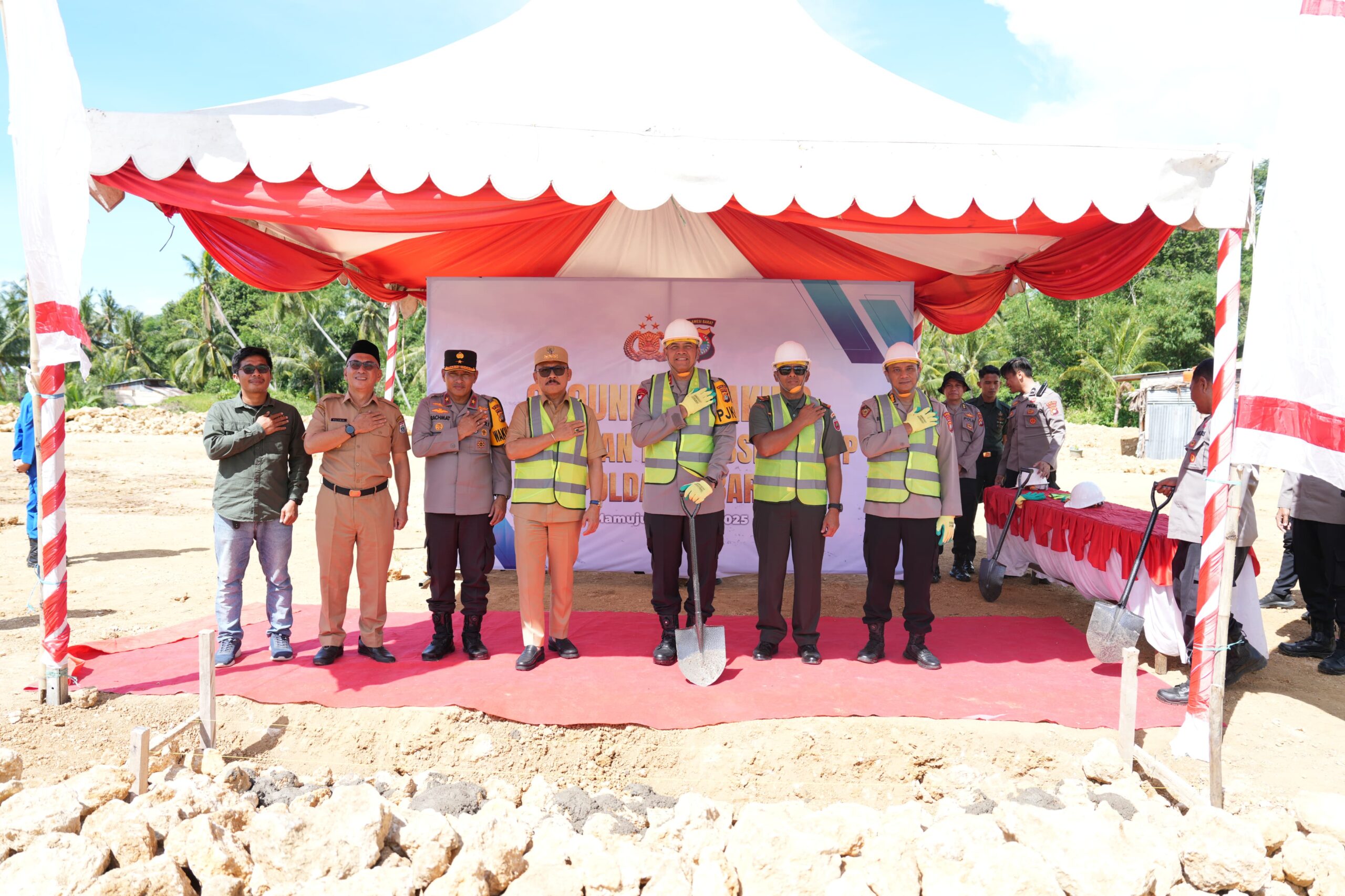 MAMUJU — Gubernur Sulawesi Barat , Suhardi Duka menghadiri ground breaking perumahan bersubsidi bagi Pegawai Negeri Pada Polri (PNPP) Kepolisian Daerah (Polda) Sulbar di Kompleks BTN Royal Riverside, Kelurahan Mamunyu, Kecamatan Mamuju, Kabupaten Mamuju, Selasa, 4 Maret 2025.