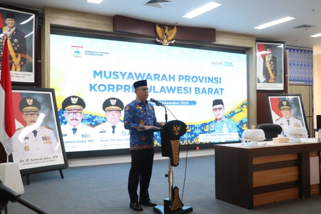 Mamuju – Sekretaris Daerah (Sekda) Provinsi Sulawesi Barat, Junda Maulana, resmi terpilih secara aklamasi sebagai Ketua Korpri Sulbar periode 2025–2030. Penetapan tersebut berlangsung dalam Musyawarah Provinsi (Musprov) Korpri Sulbar yang digelar di Ballroom Andi Depu, Kantor Gubernur Sulbar, Senin, 1 Desember 2025.