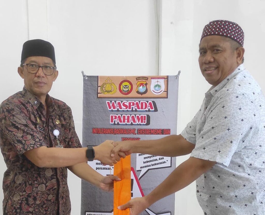 MAMUJU – Badan Kesatuan Bangsa dan Politik (Kesbangpol) Provinsi Sulawesi Barat berkolaborasi dengan Satgaswil Densus 88 Antiteror Sulawesi Barat serta Pemuda Lintas Agama Provinsi Sulawesi Barat dalam upaya meningkatkan kewaspadaan masyarakat terhadap paham intoleransi, radikalisme, ekstremisme, dan terorisme.