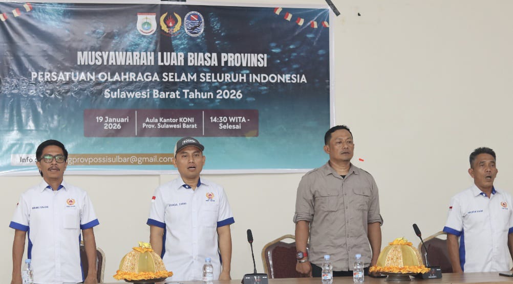 MAMUJU – Ketua Komite Olahraga Nasional Indonesia (KONI) Provinsi Sulawesi Barat (Sulbar), Syamsul Samad, secara resmi membuka Musyawarah Luar Biasa Provinsi Persatuan Olahraga Selam Seluruh Indonesia (Possi) Sulbar, Senin, 19 Januari 2026. Kegiatan tersebut digelar di Aula Kantor KONI Sulbar.