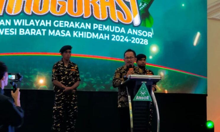 Polman – Plt Kepala Kesbangpol Sulbar Sunusi Usman mewakili Gubernur Sulawesi Barat Suhardi Duka (SDK) menghadiri pelantikan Pengurus Wilayah Gerakan Pemuda Ansor (PW GP Ansor) Provinsi Sulbar, masa bakti 2024-2029 di aula Hotel Ratih Polewali, Sabtu, 21/06/25 Malam.