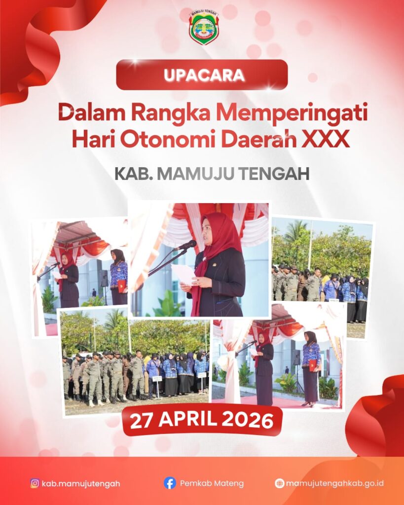 Mamuju Tengah – Pemerintah Kabupaten Mamuju Tengah menggelar upacara peringatan Hari Otonomi Daerah (Otda) ke-XXX Tahun 2026 yang dipusatkan di halaman Kantor Bupati Mamuju Tengah, Senin (27/4/2026).