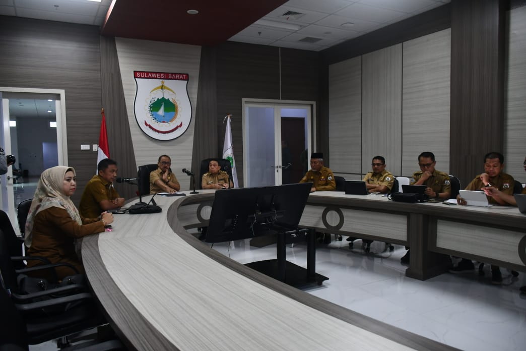 Mamuju — Gubernur Sulbar Suhardi Duka bersama Wakil Gubernur Sulbar Salim S Mengga memimpin rapat evaluasi kinerja pembangunan daerah di ruang oval Lantai 3 Kantor Gubernur Sulbar, Selasa 4 Maret 2025.