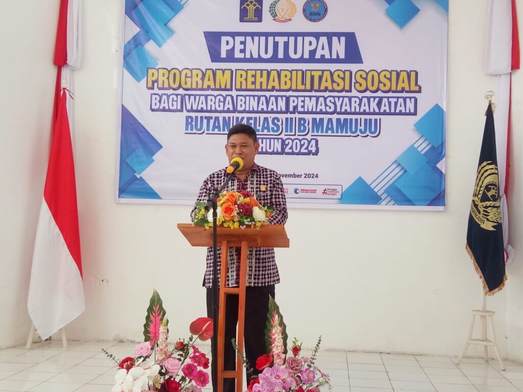 Mamuju – Mewakili Kepala Divisi Pemasyarakatan, Bagus Kurniawan, Kepala Bidang Pembinaan, Bimbingan, dan Teknologi Informasi, Akhmad Herriansyah menghadiri acara Penutupan Kegiatan Rehabilitasi Sosial bagi WBP Rutan Kelas IIB Mamuju, Kamis (21/11/2024).