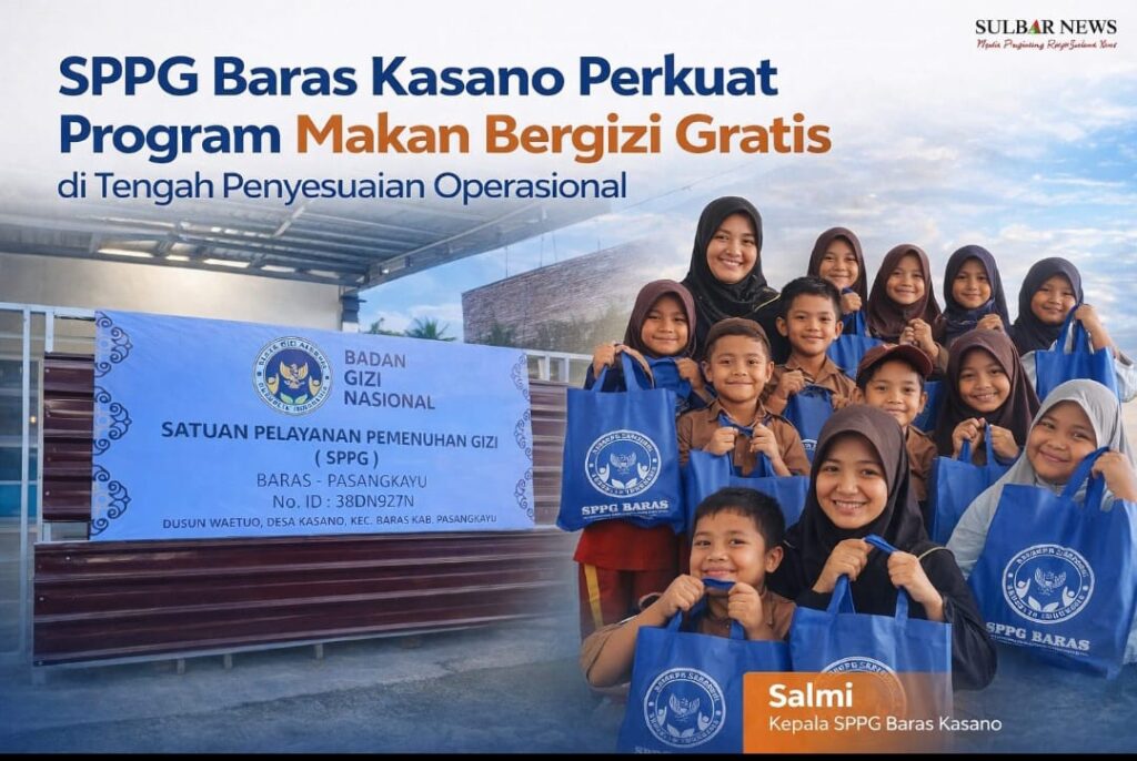 SULBARNEWS, PASANGKAYU — Di tengah masa penyesuaian operasional, Satuan Pelayanan Pemenuhan Gizi (SPPG) Baras Kasano tetap menegaskan komitmennya dalam menyukseskan Program Makan Bergizi Gratis (MBG) sebagai langkah strategis pemerintah menekan angka stunting sekaligus meningkatkan kualitas gizi anak-anak dan kelompok rentan di Kabupaten Pasangkayu.