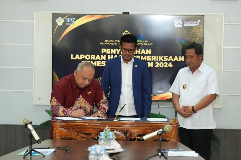 Mamuju –PJ Gubernur Sulawesi Barat Bahtiar Baharuddin menerima Laporan Hasil Pemeriksaan (LHP) Badan Pemeriksaan Keuangan (BPK) terhadap kinerja penanganan kebencanaan dari tahun 2023 hingga triwulan III 2024.